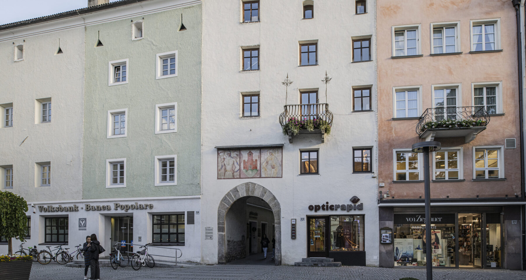 The AVIA Living townhouse is surrounded by the town wall, dating back to 1298 – a time when the whole of Bruneck consisted only of the houses in the Stadtgasse street and the surrounding fortification and moat. Locksmith’s and blacksmith’s workshops were later added next to the town wall, along with stables. The Hintergasse street is first mentioned in official documents as “Hintere Gasse” in 1382. As some of the buildings there belonged to the same owners, connecting passageways overarching the narrow lane were built, which still lend the Hintergasse street its distinctive character to this day.
